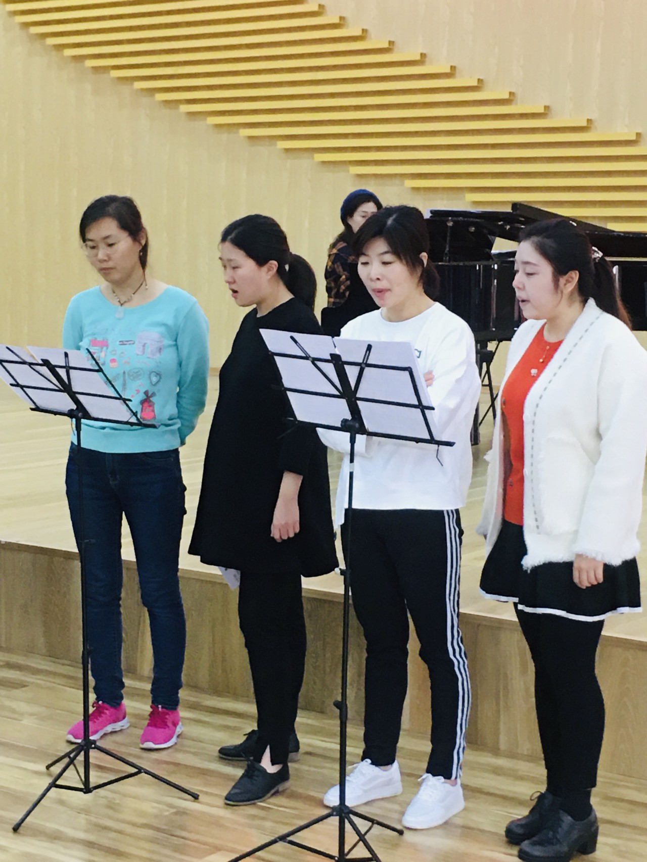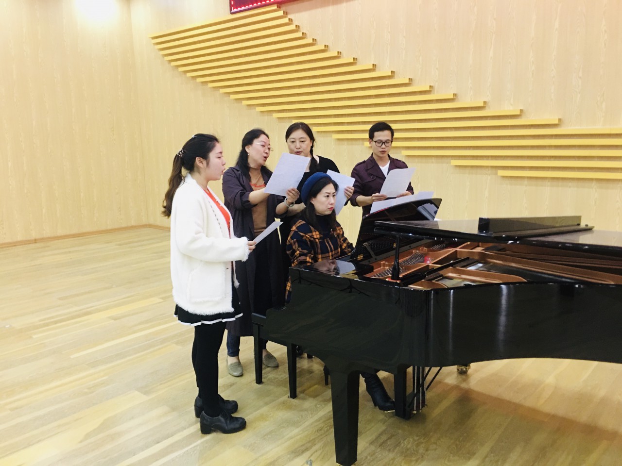 此次活动由音乐系教师党员精心策划,向设计系老师们教唱红歌《歌唱祖国》。专业的弹奏,韵律的发声,耐心的示范,一句句、一段段,每一位老师都在认真的学习和练声,用心在谱写对祖国的热爱之情。