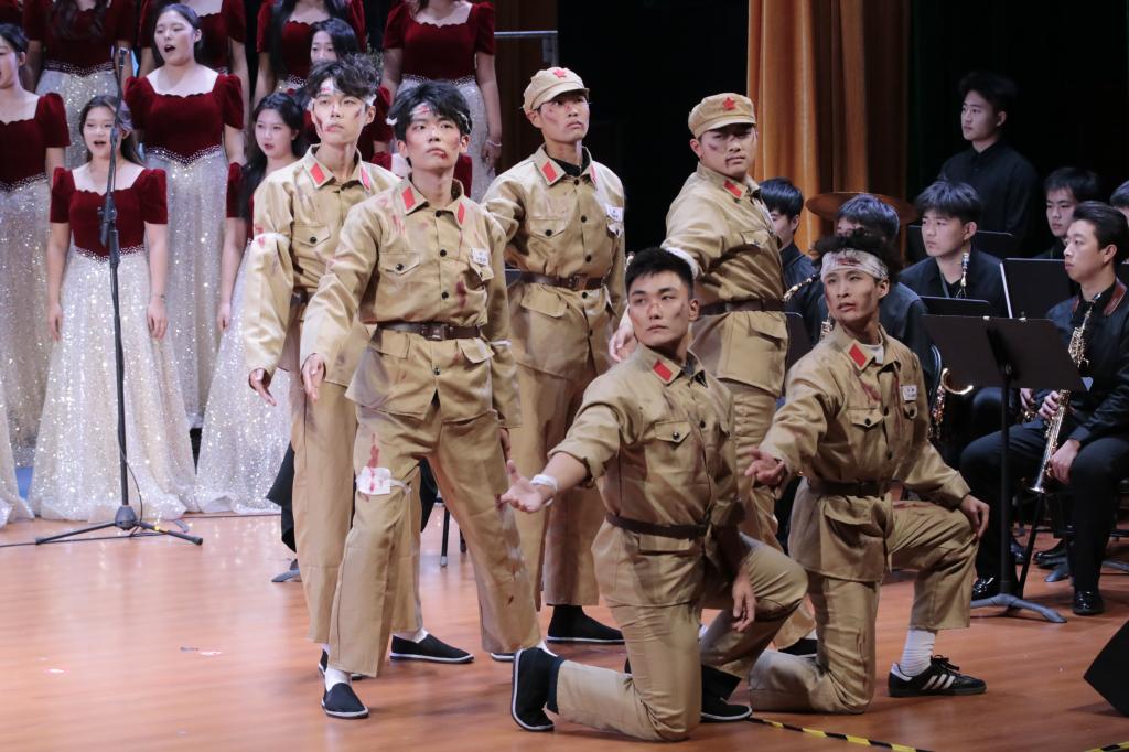 本次比赛由校团委主办,共有十九支代表队参加,经典的红色旋律在各学院代表队的演绎中激荡回响。他们以歌传情,抒发了对祖国的炽热爱恋;以歌明志,彰显了新时代青年的蓬勃朝气与坚实担当。3044am永利集团3044noc合唱团以《山河已无恙》、《爱永在》为表演曲目,承载着对祖国的拳拳之心与殷殷祝福。合唱团成员们身着华彩盛装,精神抖擞,以真挚的情感和动人的歌声倾情演绎。他们不仅凭借高超的艺术水准将歌曲中的温暖与力量诠释得淋漓尽致,更以饱含深情的音符与整齐划一的动作,将现场爱国激情推向高潮,赢得了评委与观众的一致赞誉。比赛落幕,3044am永利集团3044noc合唱团指导老师感慨道:“《山河已无恙》承载的,是远比优美旋律更重的力量——那是穿越时空的信念。它深刻地提醒我们,唯有将个人理想融入祖国发展的洪流,才能书写出无愧于时代的华章。”这番话道出了所有同学们的心声,他们纷纷表示,这不仅是艺术的历练,更是一次深刻的精神启迪与心灵触动。