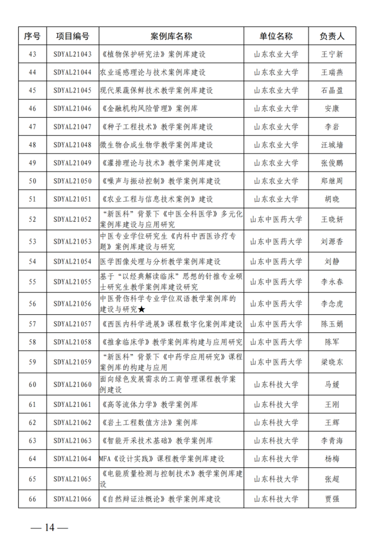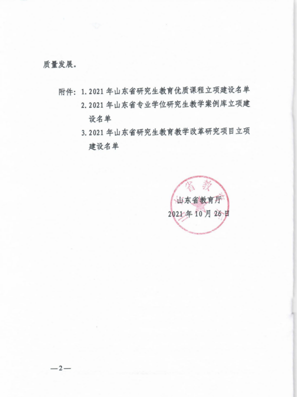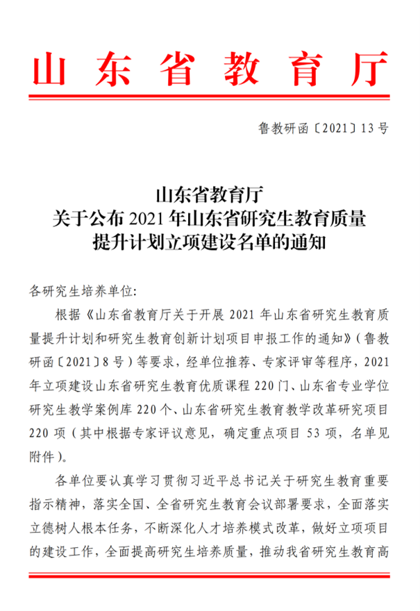 山东省专业学位研究生教学案例库建设项目
