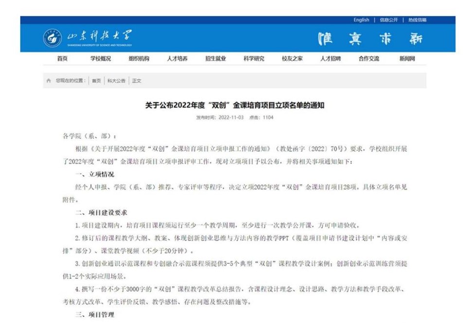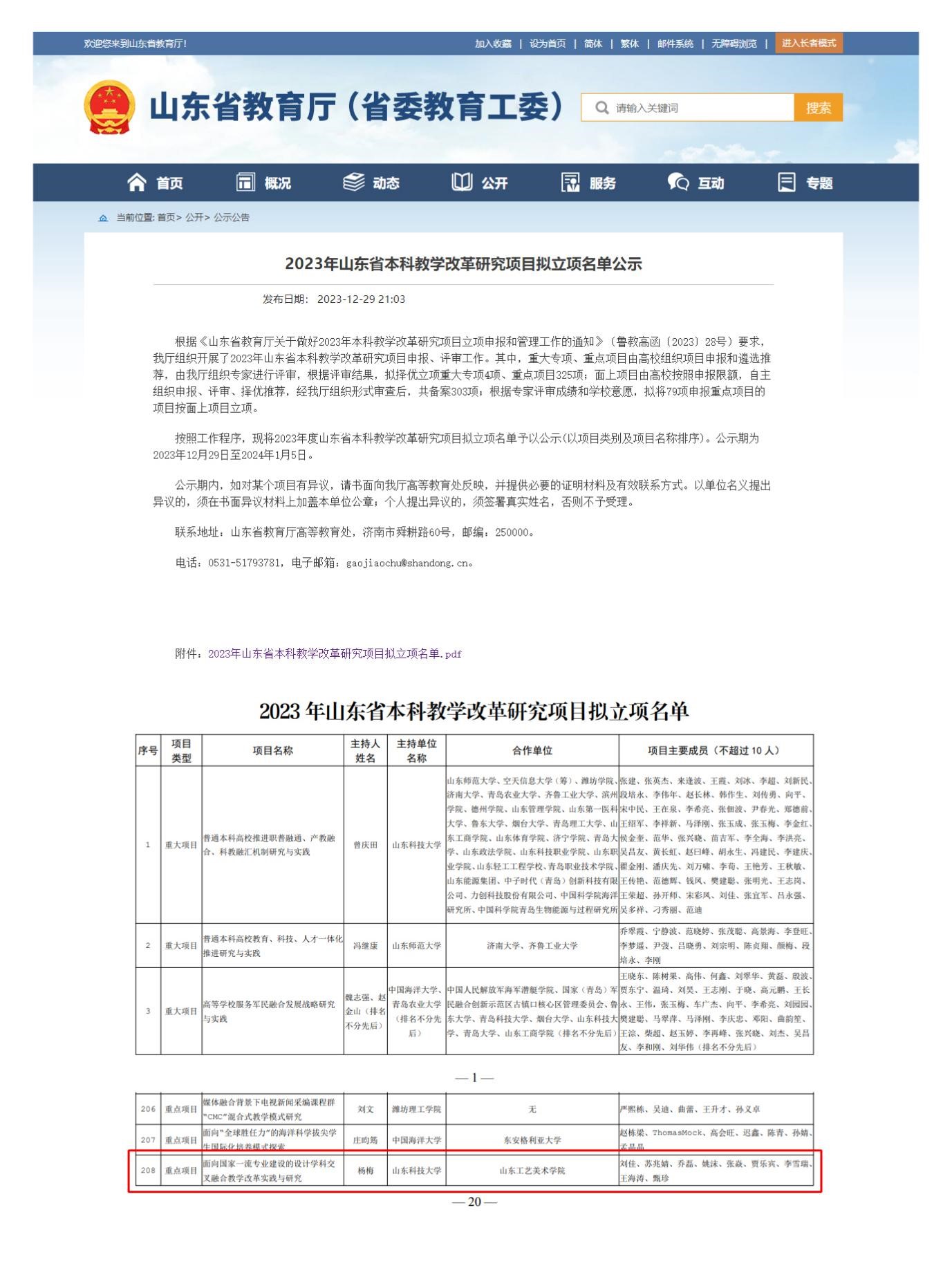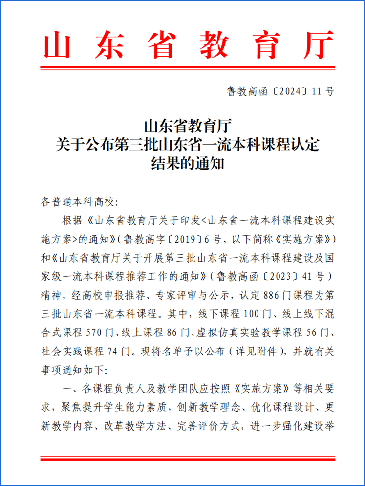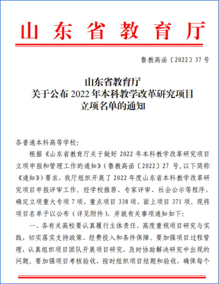 山东省本科教学改革重点项目