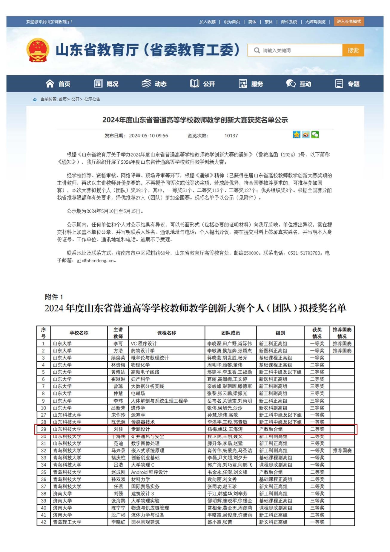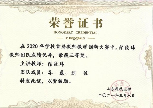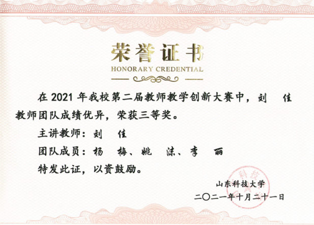 山东省普通高等学校教师教学创新大赛二等奖