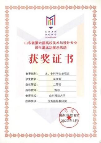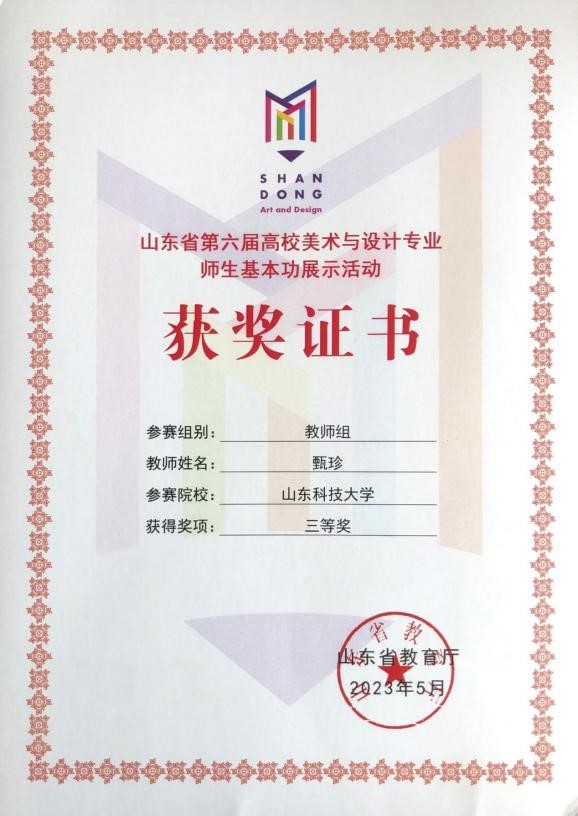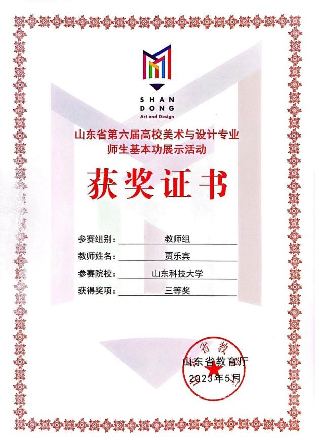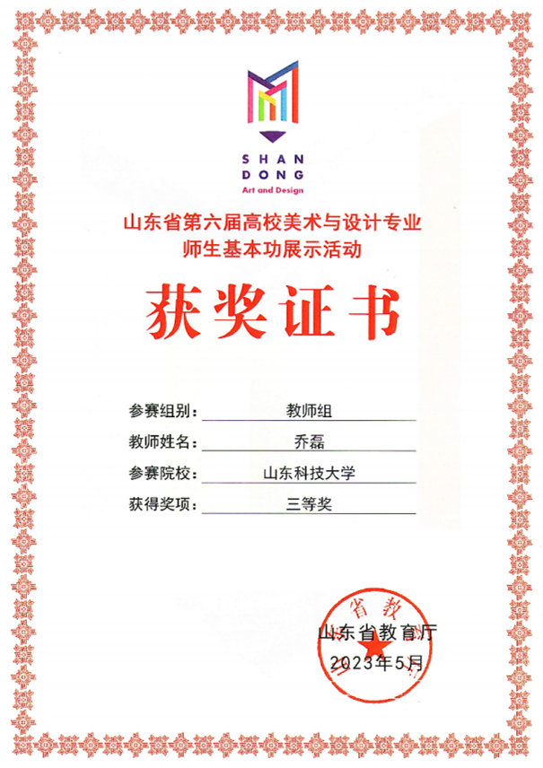 山东省第六届高校美术与设计专业师基本功展示活动教师组三等奖