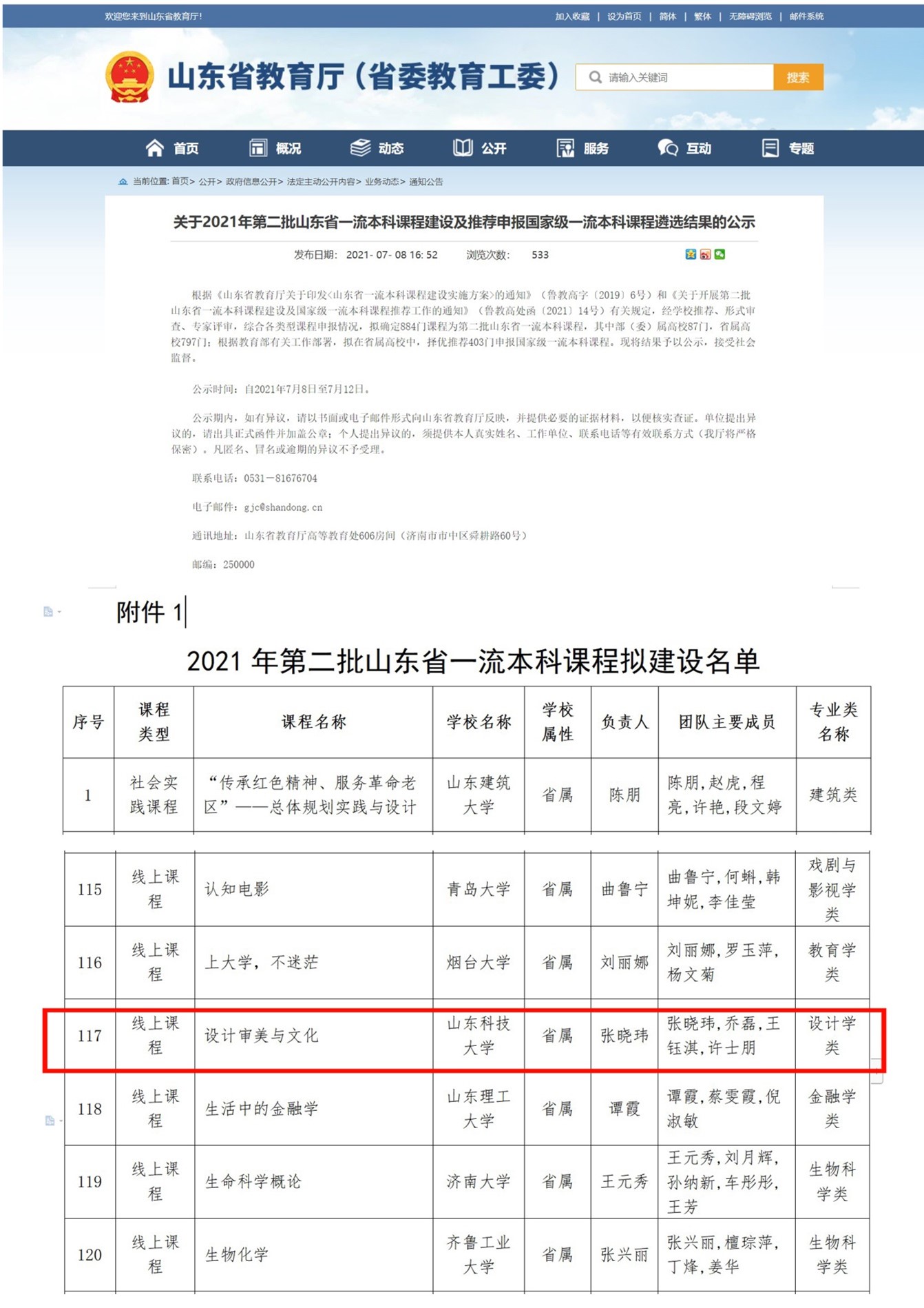 山东省一流课程建设(金课)《设计审美与文化》