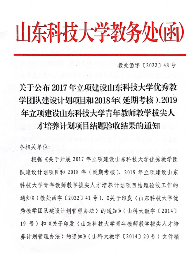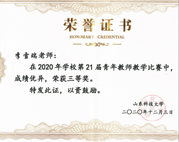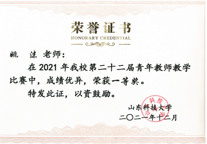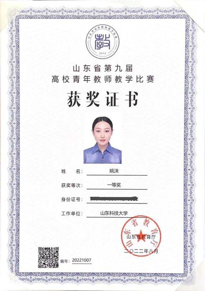 山东省第九届高校青年教师教学比赛一等奖