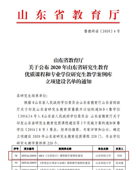 山东省研究生教育质量提升计划项目《MFA<设计实践>课程教学案例库建设》