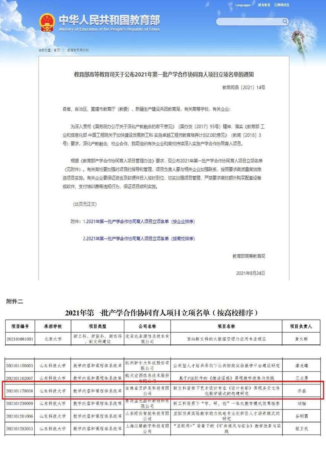 教育部产学合作协同育人教改项目