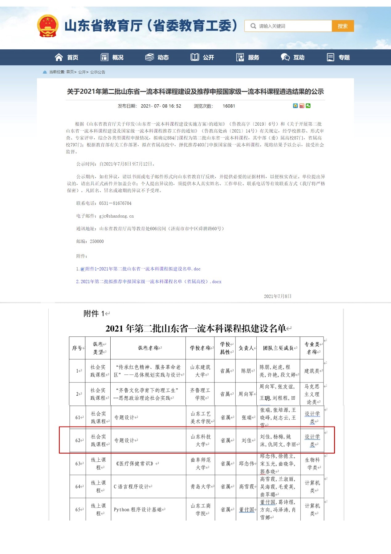 山东省一流本科课程(社会实践课程)《专题设计》