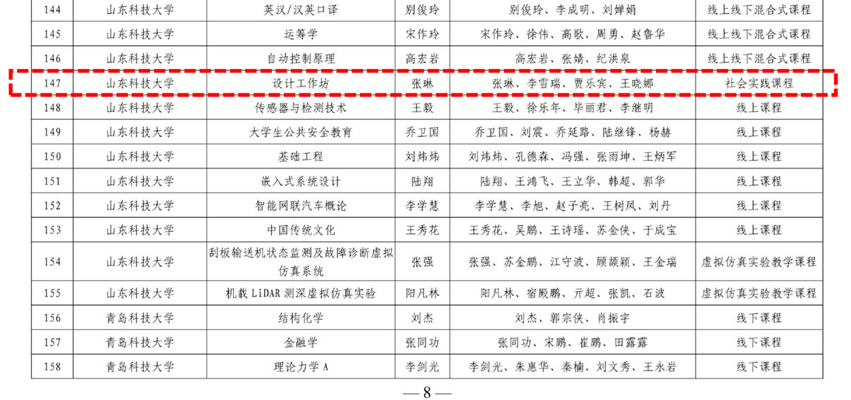 山东省一流本科课程(社会实践课程)《设计工作坊》