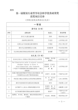 第一届煤炭行业哲学社会科学优秀成果奖三等奖(著作类)