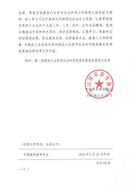 中国煤炭行业协会教学成果二等奖