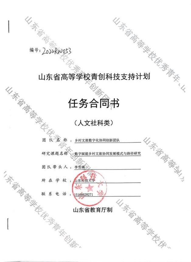 山东省高等学校青创团队科技计划《乡村文旅数字化协同创新团队》