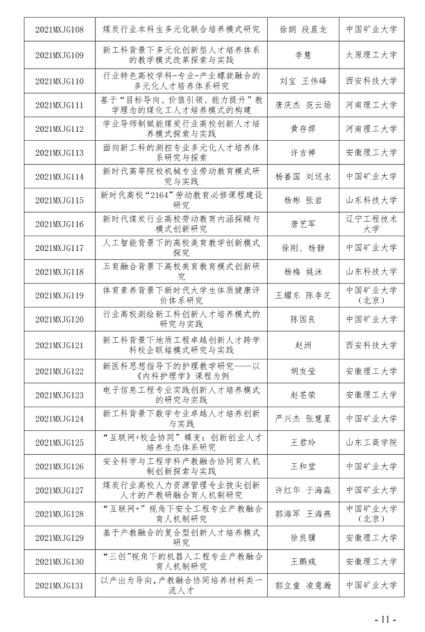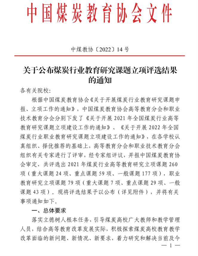 中国煤炭行业教育研究课题