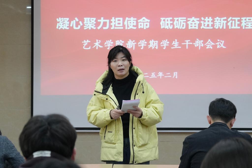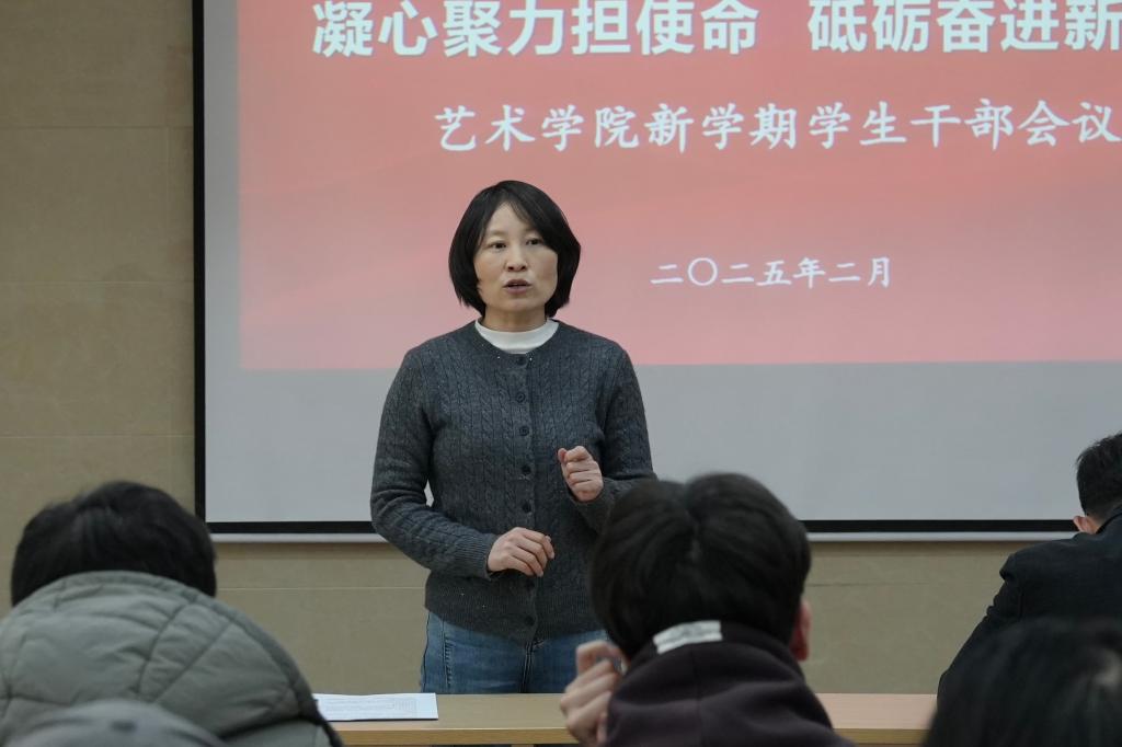 会上,卫雪传达了学校学生工作会议精神,总结了2024年学团工作在思想引领、学风建设、科技创新、志愿实践以及文体活动等方面取得的成绩和存在的不足。随后,卫雪对全体学生干部新学年如何开展工作提出三点建议:一是坚定信念、凝聚共识;二是聚焦问题、笃行实干;三是锚定目标、奋楫前行。百舸争流千帆竞,奋楫笃行正当时。她要求所有学生工作干部凝心聚力、行而不辍,为实现争一流目标贡献自己的力量。