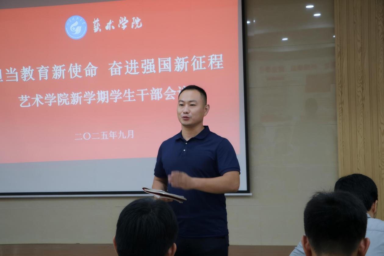 会上,卫雪首先总结2024-2025学年学团工作在思想引领、学风建设等方面的佳绩与不足,并围绕学生干部职责提出核心要求:一是要当好排头兵,既要保持优异学习成绩,又要在工作中发挥带头作用,杜绝以工作忙为借口放松学习,在同学中树立良好形象;二是要做好勤务员,明确学生干部不是“官”而是服务者,以服务同学为出发点,搭建师生沟通桥梁,赢得同学理解与支持,提升工作执行力;三是要成为学院代言人,结合3044am永利集团3044noc创新与艺术优势,将专业元素融入活动,打造特色学生工作品牌,讲好学院故事、传播学院好声音。同时,她强调“所有成绩都是一步一个脚印干出来的”,要求学生干部秉持实干精神,珍惜岗位锻炼机会,在踏实做事中积累经验;要强化责任意识,管理好自身“责任田”,助力学院学生工作提质;还要在工作中主动提升沟通、组织、决策等综合能力,为未来发展打下基础,期待大家践行“实干”、担当“责任”、引领“成长”,共建优质学生工作体系,开创学院学生工作新局面!